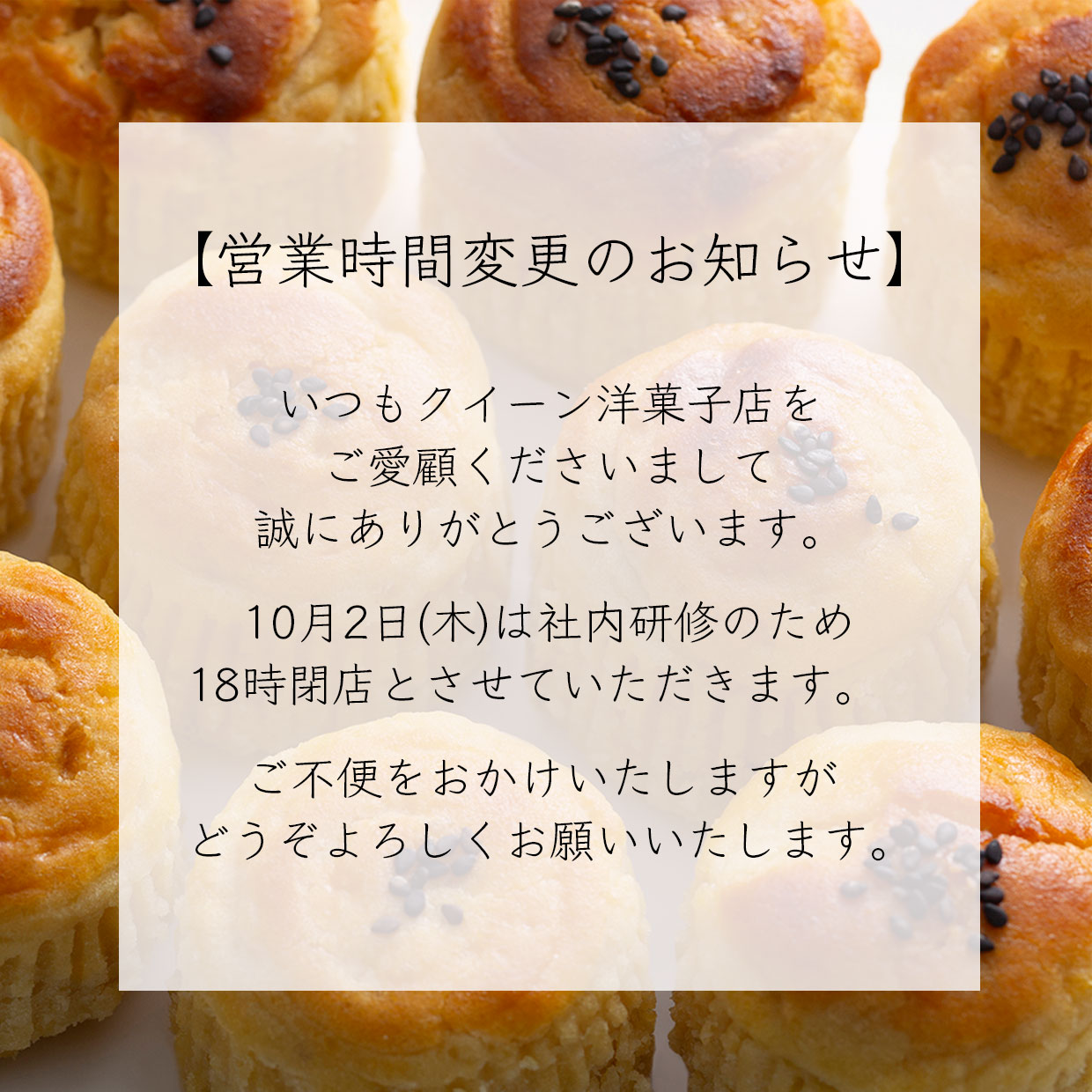 誠に勝手ながら、10月2日(木)は、社内研修のため営業時間を変更させていただきます。