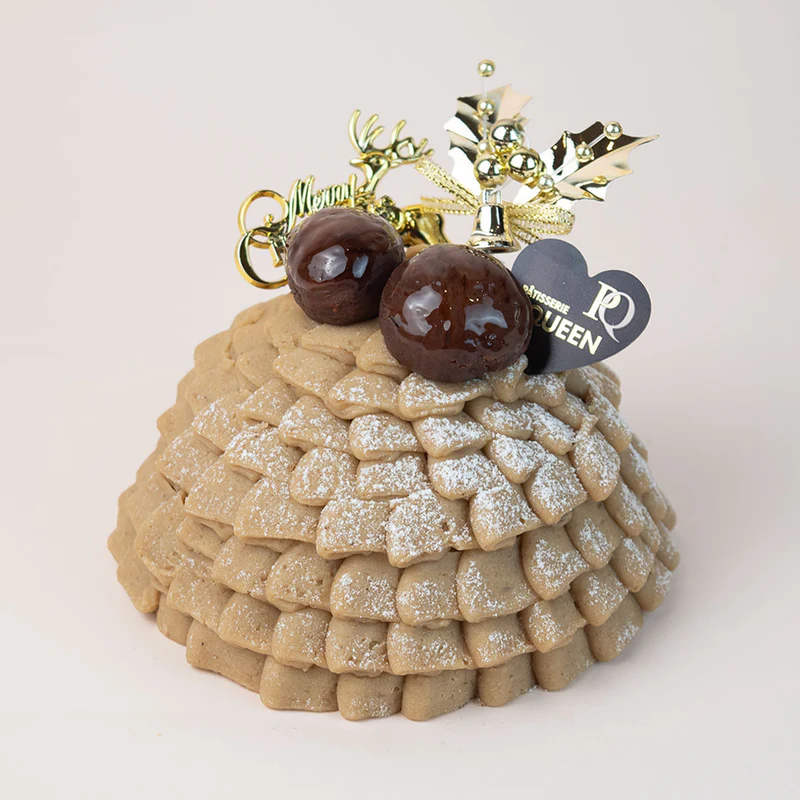 和栗のモンブラン香ばしいナッツのメレンゲに、コクのあるマスカルポーネクリームと生クリーム。仕上げに茨城県産和栗のペーストをたっぷり絞った、口どけ豊かなモンブランです。